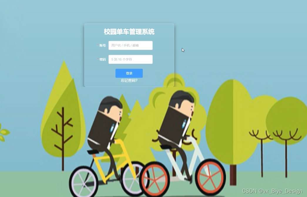 普通用户登录校园自行车租赁系统,需先注册,在登录页面输入用户名、密码进行登录,如下图所示。