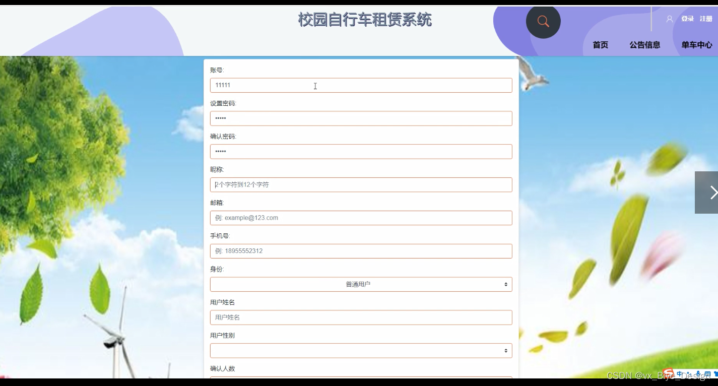 会员用户登录校园自行车租赁系统,需先注册,在注册页面输入用户名、密码等信息完成注册后进行登录,如下图所示。