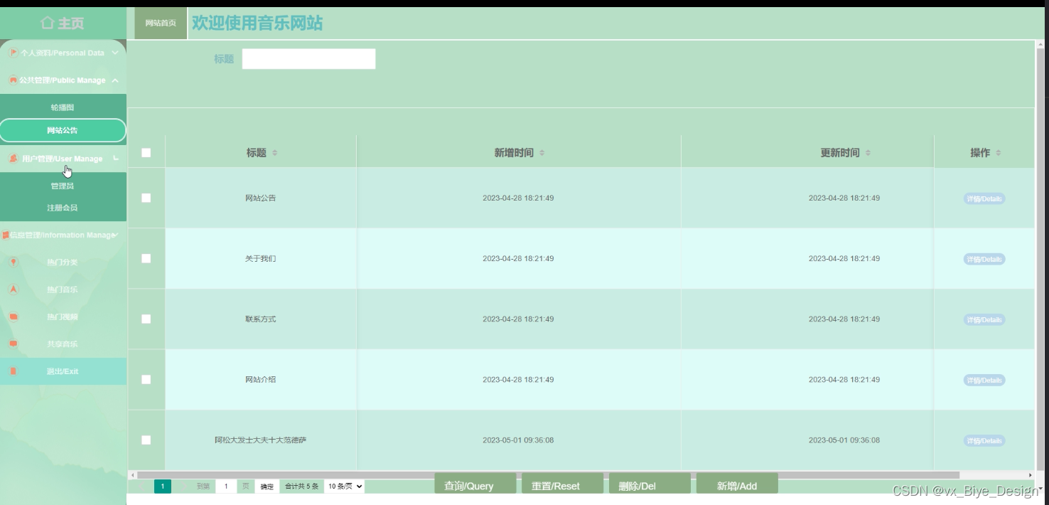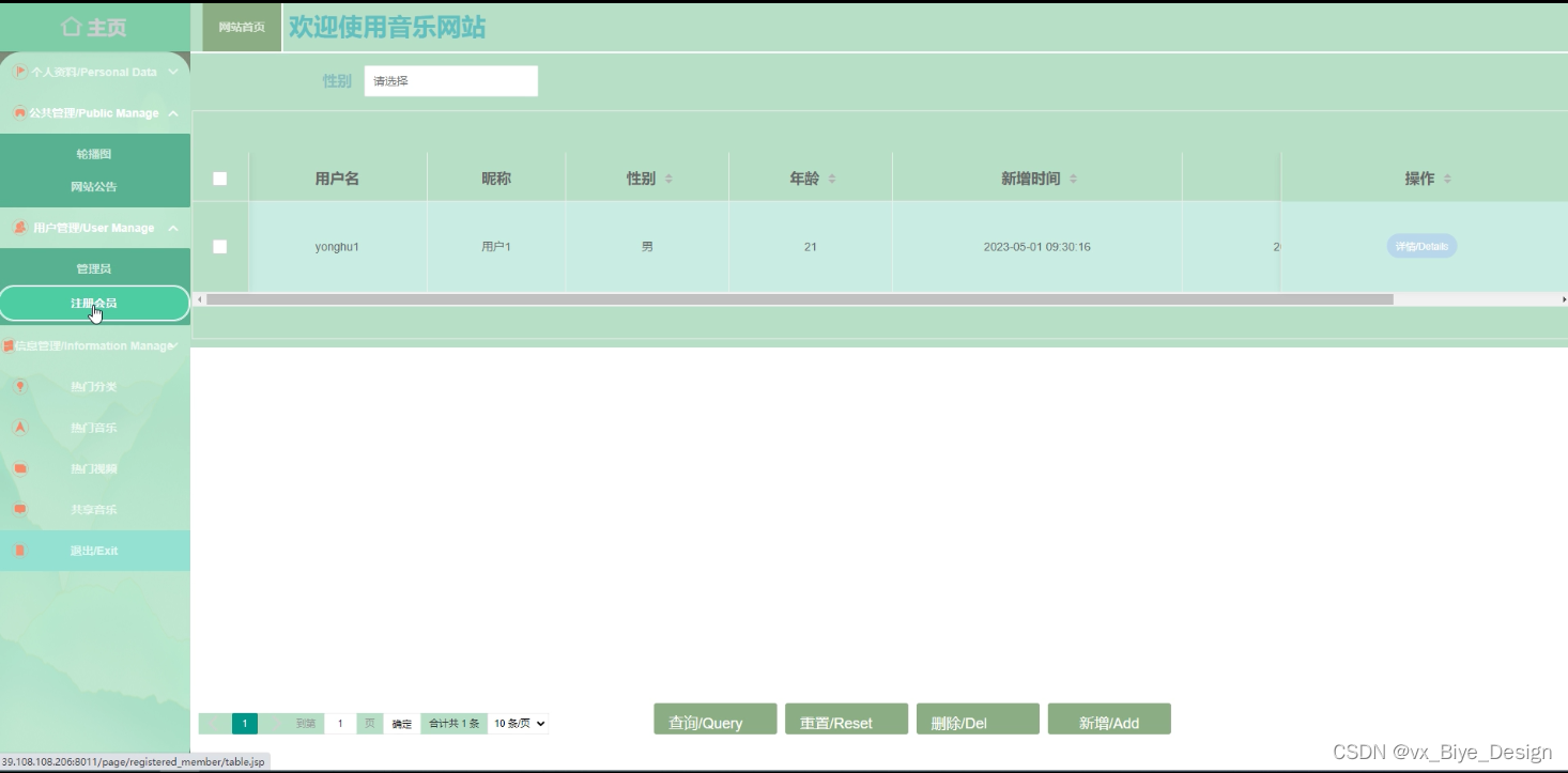 The development of music website makes the system more convenient and fast, and also makes the music website more systematic and orderly. The system interface is friendly and easy to operate.