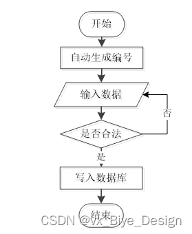 用户成功登入系统后就能够实现增加数据的操作,增加数据的编号是特定的,系统生成,用户不能随意填写,除了编号以外,其他增加信息用户自己填写,填写后的信息经过系统验证,验证合法通过就显示增加数据成功了,相反的话,就没有增加成功,图2-1显示的就是在增加数据时的流程。