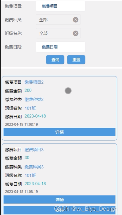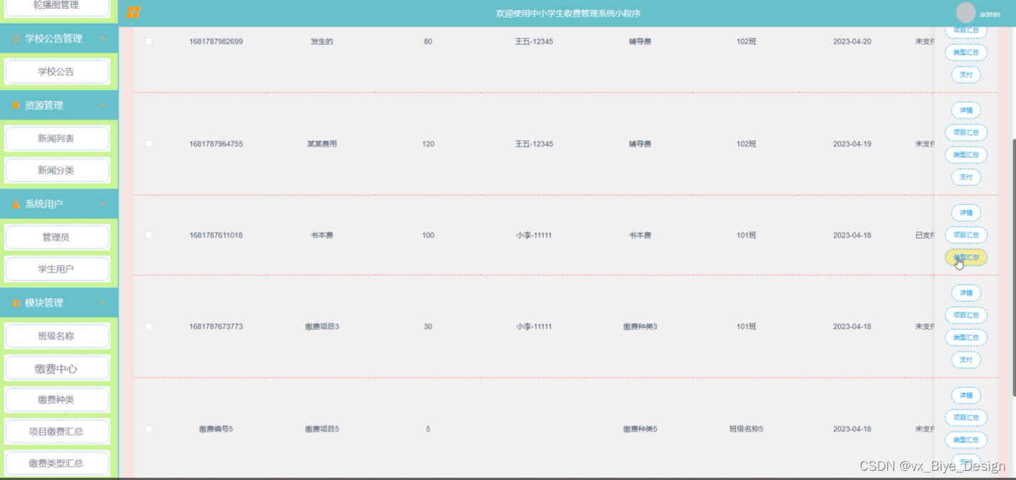 Springboot Primary and Secondary School Student Fee Management System Mini Program