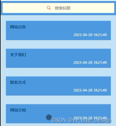 (5)学校公告管理:管理员可以对Springboot中小学生收费管理系统小程序中首页显示的系统中的一些公告信息发布到系统当中,让用户及时的查看到系统信息,进行合理安排。