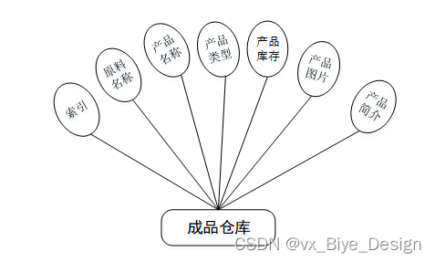 成品仓库管理主要包括索引、原料名称、产品名称、产品名称、产品类型、产品库存、产品图片、产品简介等属性,成品仓库管理属性图如图4-5所示。