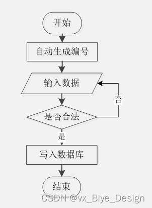 对于校园体育设施管理系统小程序,需要随时添加所需要的数据信息,对于用户添加信息,需要根据添加界面,根据选框的内容进行填写所要添加的数据信息,信息输入完成后判断数据信息是否符合要求,符合要求则添加完成,用户所添加的信息不符合要求,则需要返回到第一步,重新输入数据信息,再进行判断操作,如图3-2所示。