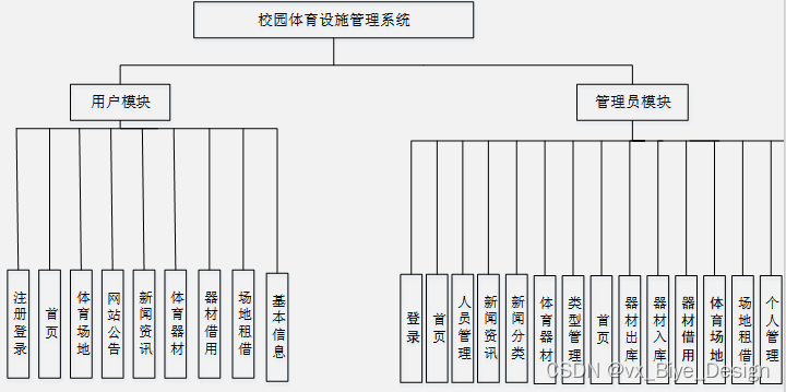 这些功能可以充分满足校园体育设施管理系统小程序的需求。此系统功能较为全面如下图系统功能结构如图4-5所示。
