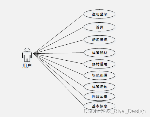 (3)确定好系统使用的技术,进行在线确认系统所划分的用户角色,并且根据用户角色划分确定所要设计的功能模块,对于校园体育设施管理系统小程序的设计主要划分别为管理员和系统用户两个角色,并所使用的功能模块也相应不同,但是系统的数据库实现的内容是交互的,用户可以随时根据自己的需求进行课程信息,对于系统工作人员可以根据自己的分管内容进行在线信息的处理及操作,管理员获取到所有用户的详细数据信息,并根据需求进行第一时间处理解决。