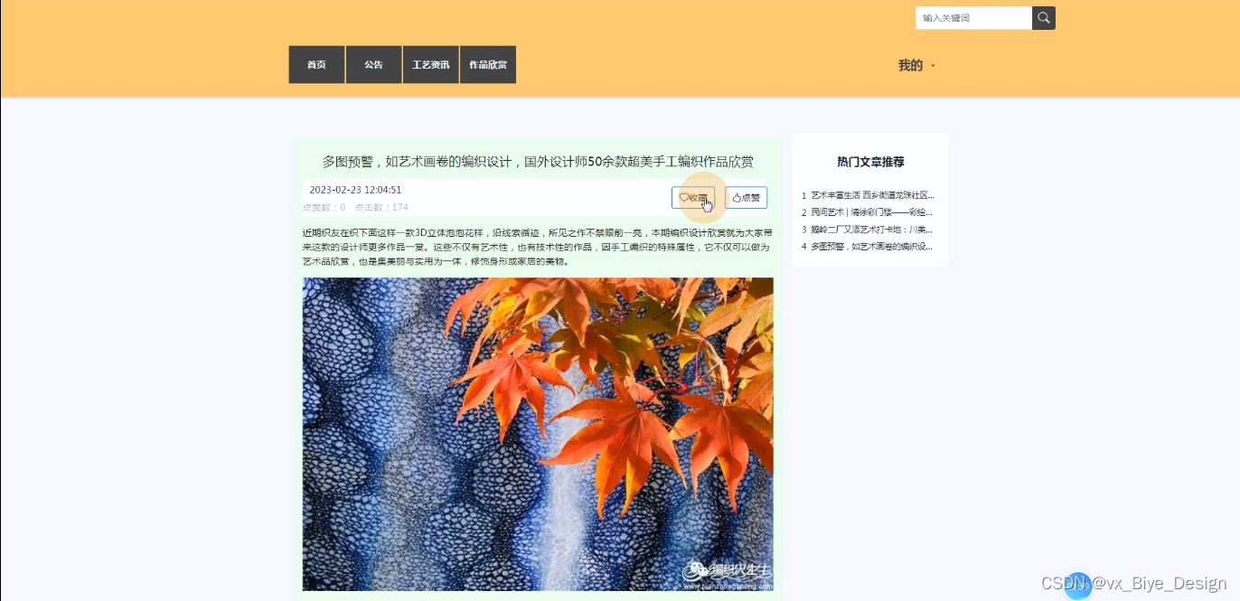 (5)工艺资讯:用户可以查看工艺资讯信息,在查询到自己想要了解的工艺资讯的时候,可以进入查看详细的介绍进行评论、点赞、收藏操作。