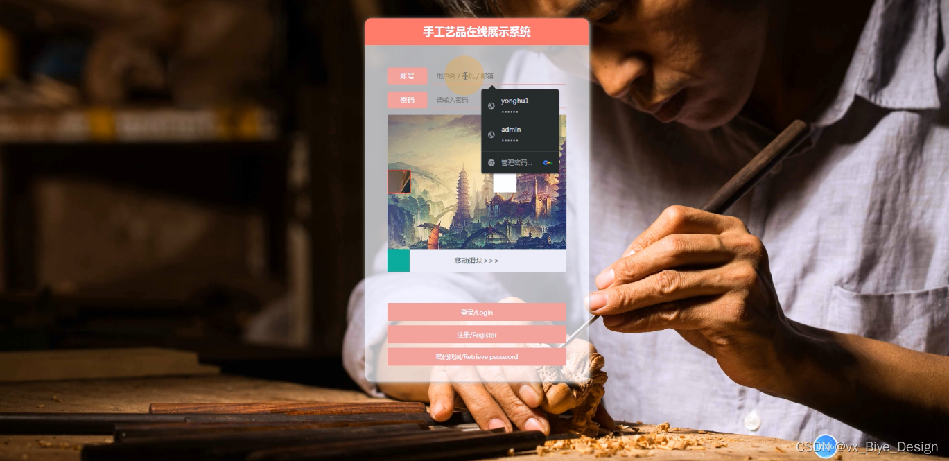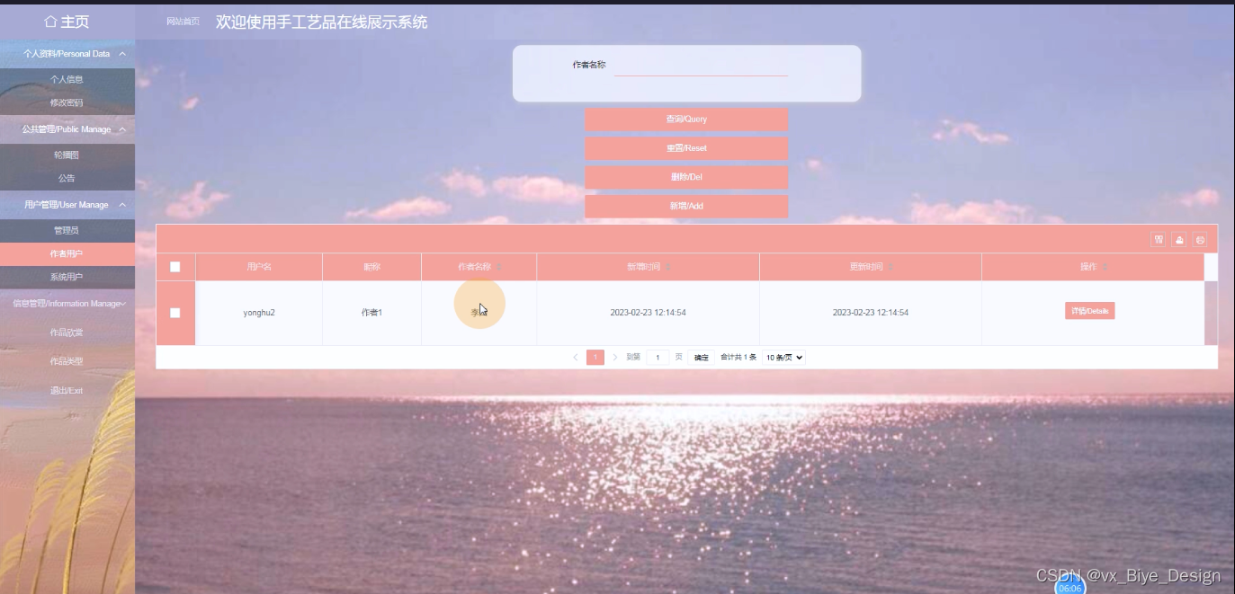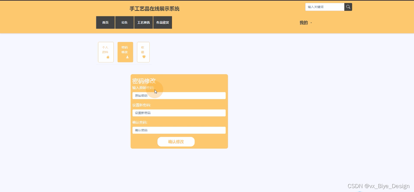 (2)手工艺品在线展示系统中的web后台管理中的前端使用的是JavaScript框架,它配合ajax和jquery可以美化页面设计。