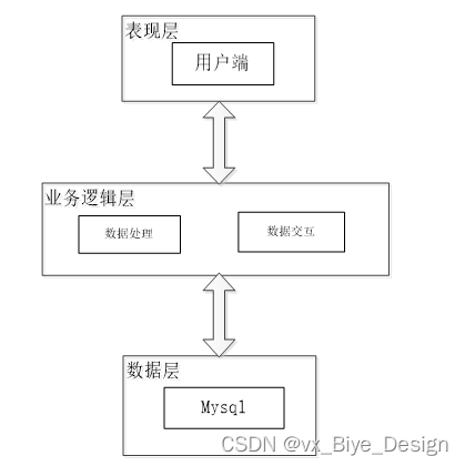 数据层(DL):由于本手工艺品在线展示系统的数据是放在服务端的mysql数据库中,因此本属于服务层的部分可以直接整合在业务逻辑层中,所以数据层中只有数据库,其主要完成本手工艺品在线展示系统的数据存储和管理功能。