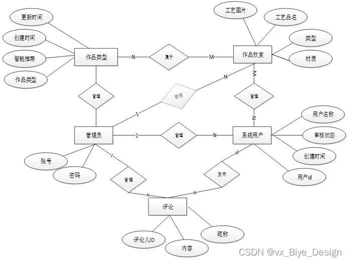 手工艺品在线展示系统中需要存储不少作品欣赏信息,其模块功能结构,具体的结构图如下: