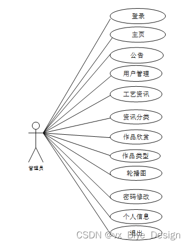 web后台管理上的管理员是维护整个手工艺品在线展示系统中所有数据信息的。管理员角色用例如图2-4所示。