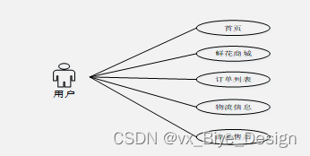 (3)确定好系统使用的技术,进行在线确认系统所划分的用户角色,并且根据用户角色划分确定所要设计的功能模块,对于微信小程序的鲜花商城系统的设计主要划分别为管理员和用户角色,并所使用的功能模块也相应不同,但是系统的数据库实现的内容是交互的,用户可以随时根据自己的需求进行课程信息,对于系统工作人员可以根据自己的分管内容进行在线信息的处理及操作,管理员获取到所有用户的详细数据信息,并根据需求进行第一时间处理解决。
