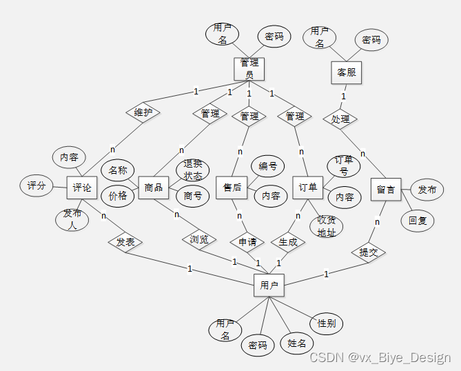 概念模型的设计是为了抽象真实世界的信息,并对信息世界进行建模。它是数据库设计的强大工具。数据库概念模型设计可以通过E-R图描述现实世界的概念模型。系统的E-R图显示了系统中实体之间的链接。而且Mysql数据库是自我保护能力比较强的数据库,下图主要是对数据库实体的E-R图:
