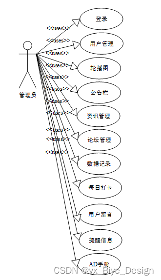 阿尔茨海默病预防的交互式网站的功能主要分为前台用户根据自己的需求进行注册登录,浏览族谱申报信息并对选中的族谱申报进行发布操作。后台系统管理员因职责的不同,分为普通管理员和超级管理员,管理员主要对注册用户,数据记录、每日打卡、用户留言详细信息,AD手册详细信息进行处理。