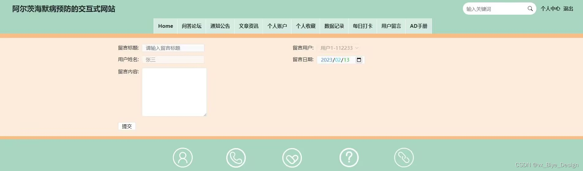 阿尔茨海默病预防的交互式网站主要功能模块包括首页、轮播图、通知公告、资源管理(文章资讯、资讯分类)交流论坛(问答论坛、论坛分类)系统用户(管理员、普通用户)模块管理(数据记录、每日打卡、用户留言、提醒信息、AD手册),采取面对对象的开发模式进行软件的开发和硬体的架设,能很好的满足实际使用的需求,完善了对应的软体架设以及程序编码的工作,采取MySQL作为后台数据的主要存储单元,采用springboot框架、Java技术、Ajax技术进行业务系统的编码及其开发,实现了本系统的全部功能。本次报告,首先分析了研究的背景、作用、意义,为研究工作的合理性打下了基础。针对阿尔茨海默病预防的交互式网站的各项需求以及技术问题进行分析,证明了系统的必要性和技术可行性,然后对设计系统需要使用的技术软件以及设计思想做了基本的介绍,最后来实现阿尔茨海默病预防的交互式网站和部署运行使用它。