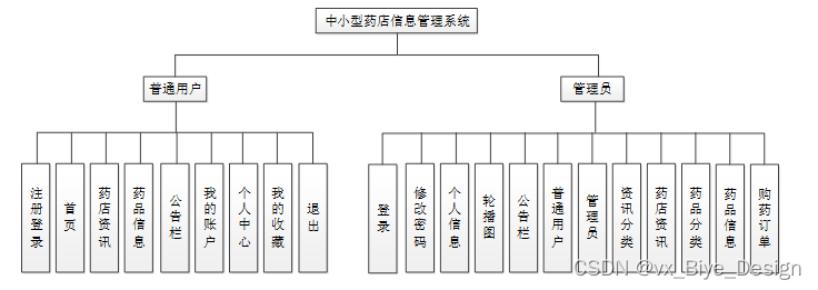 中小型药店信息管理系统划分为了普通用户模块和管理员模块这两大部分。