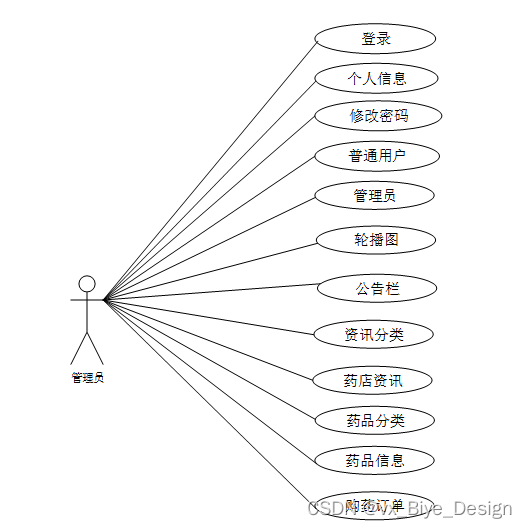 图2-2 中小型药店信息管理系统管理员角色用例图