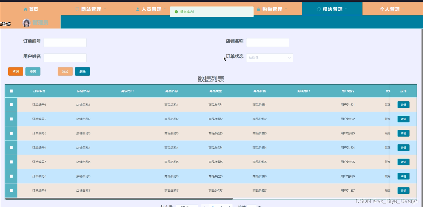 (3)订单列表:查看购买的我的商品订单,对提交的订单进行管理。