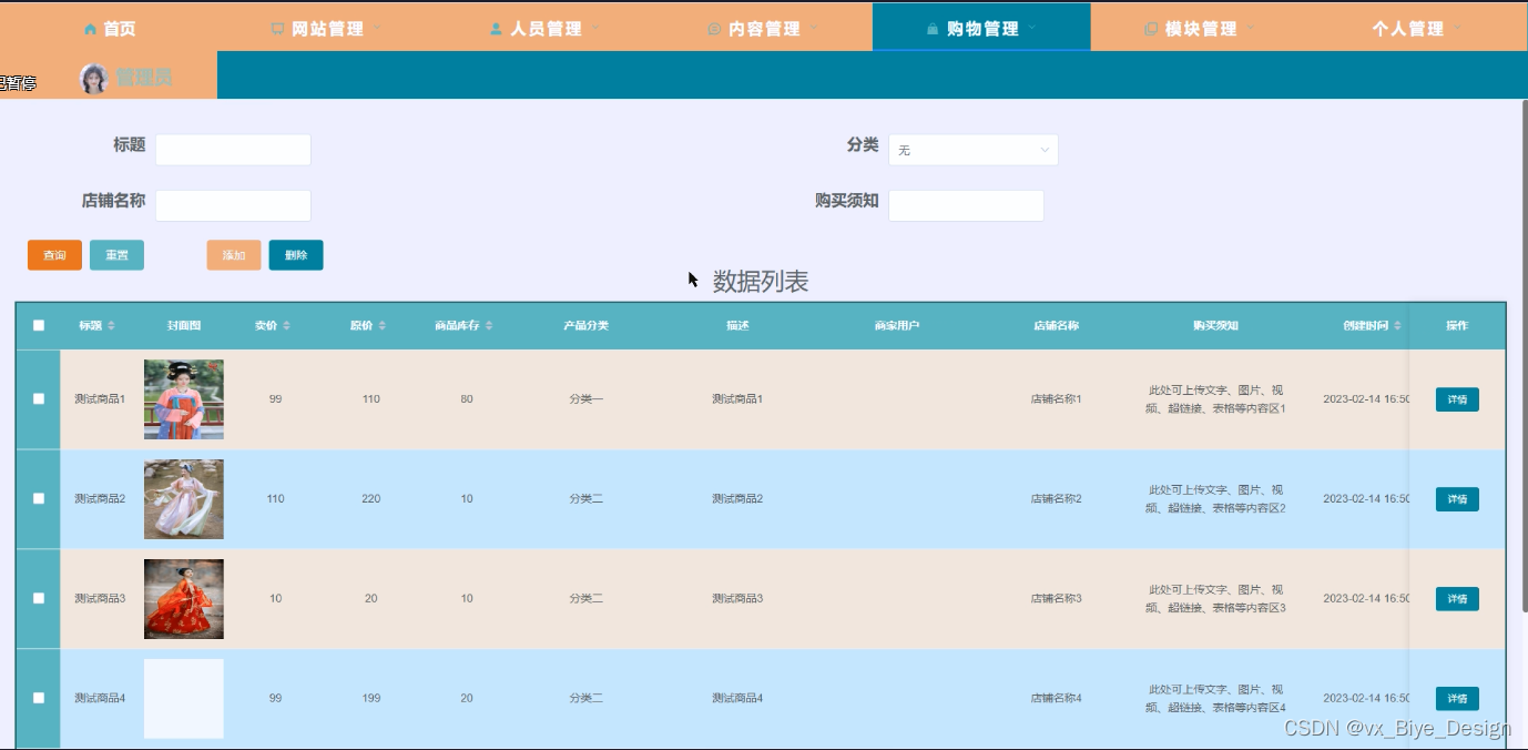 (2)商城管理:管理员可以对汉服销售系统小程序中现有的商品进行增删改查。