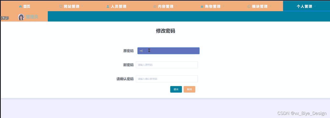 | 测试流程 | 1)管理员密码修改并完成填写。 2)点击进行提交。 |