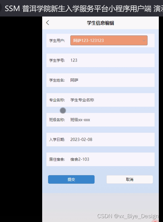 随着我国经济迅速发展,人们对手机的需求越来越大,各种手机软件也都在被广泛应用,但是对于手机进行数据信息管理,对于手机的各种软件也是备受用户的喜爱,普洱学院新生入学服务平台小程序被用户普遍使用,为方便用户能够可以随时进行普洱学院新生入学服务平台小程序的数据信息管理,特开发了基于SSM 普洱学院新生入学服务平台小程序的管理系统。