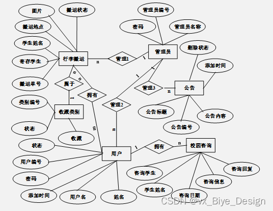 概念模型的设计是为了抽象真实世界的信息,并对信息世界进行建模。它是数据库设计的强大工具。数据库概念模型设计可以通过E-R图描述现实世界的概念模型。系统的E-R图显示了系统中实体之间的链接。而且Mysql数据库是自我保护能力比较强的数据库,下图主要是对数据库实体的E-R图: