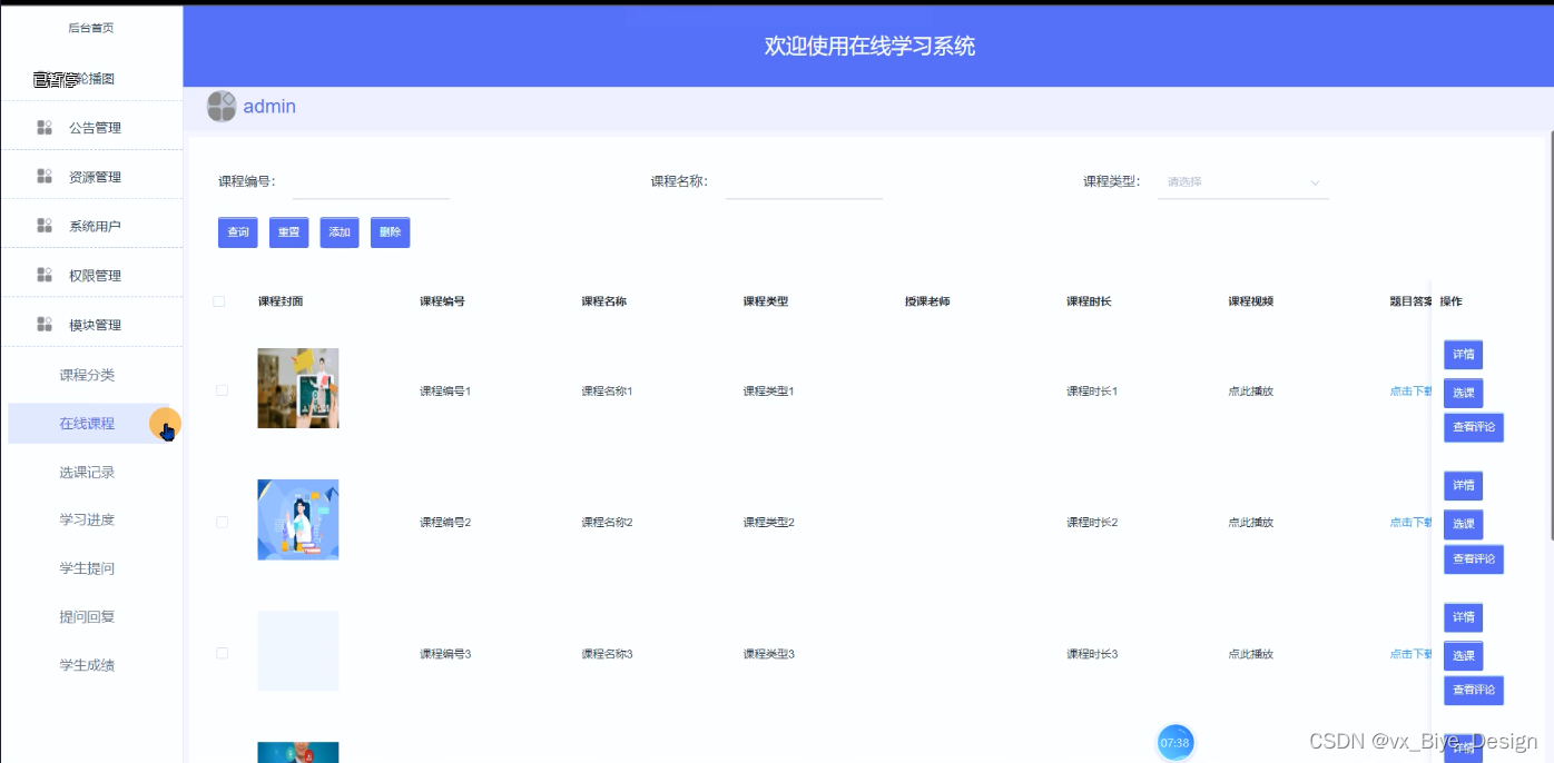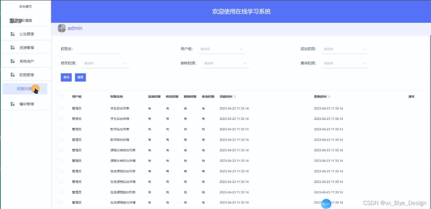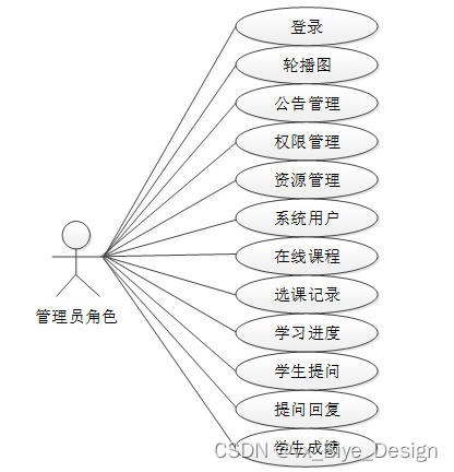 在线学习系统从角色上划分为了学生、教师以及管理员三种角色。