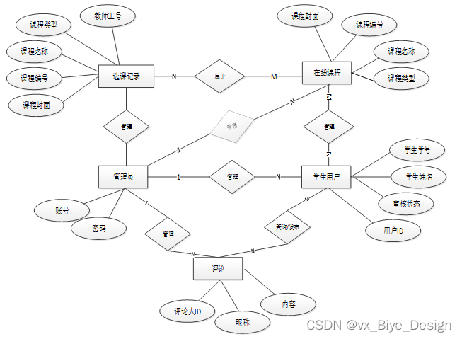 下面根据在线学习系统的数据库总E-R关系图可以得出在线学习系统需要很多E-R图,在此罗列出来一些主要的数据库E-R模型图。
