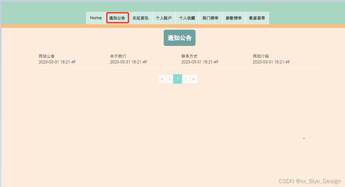 当点击导航栏上的“通知公告”的时候,就会进入对应的界面查看公告信息,通知公告界面如下图4.4所示。
