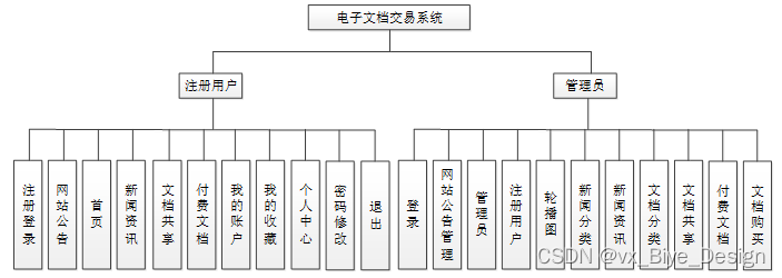 电子文档交易系统从角色上划分为了注册用户以及管理员两种角色。