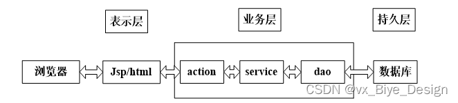 目前B/S体系的系统主要的数据访问方式是:通过浏览器页面用户可以进入系统,系统可以自动对用户向服务器发送的请求进行处理,处理请求是在系统后台中进行的,用户在浏览器页面上进行相应操作,就能够看到服务端传递的处理结果。网上评教系统主要分为视图-模型-控制三层架构设计。在视图层中,主要是操作在服务器端向客户端反馈并显示的数据,在模型层中,主要处理相关的业务逻辑、数据整合等,最后的控制层它介于视图和模型之间,主要是调整两层之间的关系,最终落实数据的传递。
