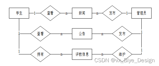 对于一个要开发的系统来说,E-R图可以让别人能更快更轻松的了解此系统的事务及它们之间的关系。根据系统分析阶段所得出的结论确定了在网上评教系统中存在着多个实体分别是用教师、管理员、课程、评教、学生。