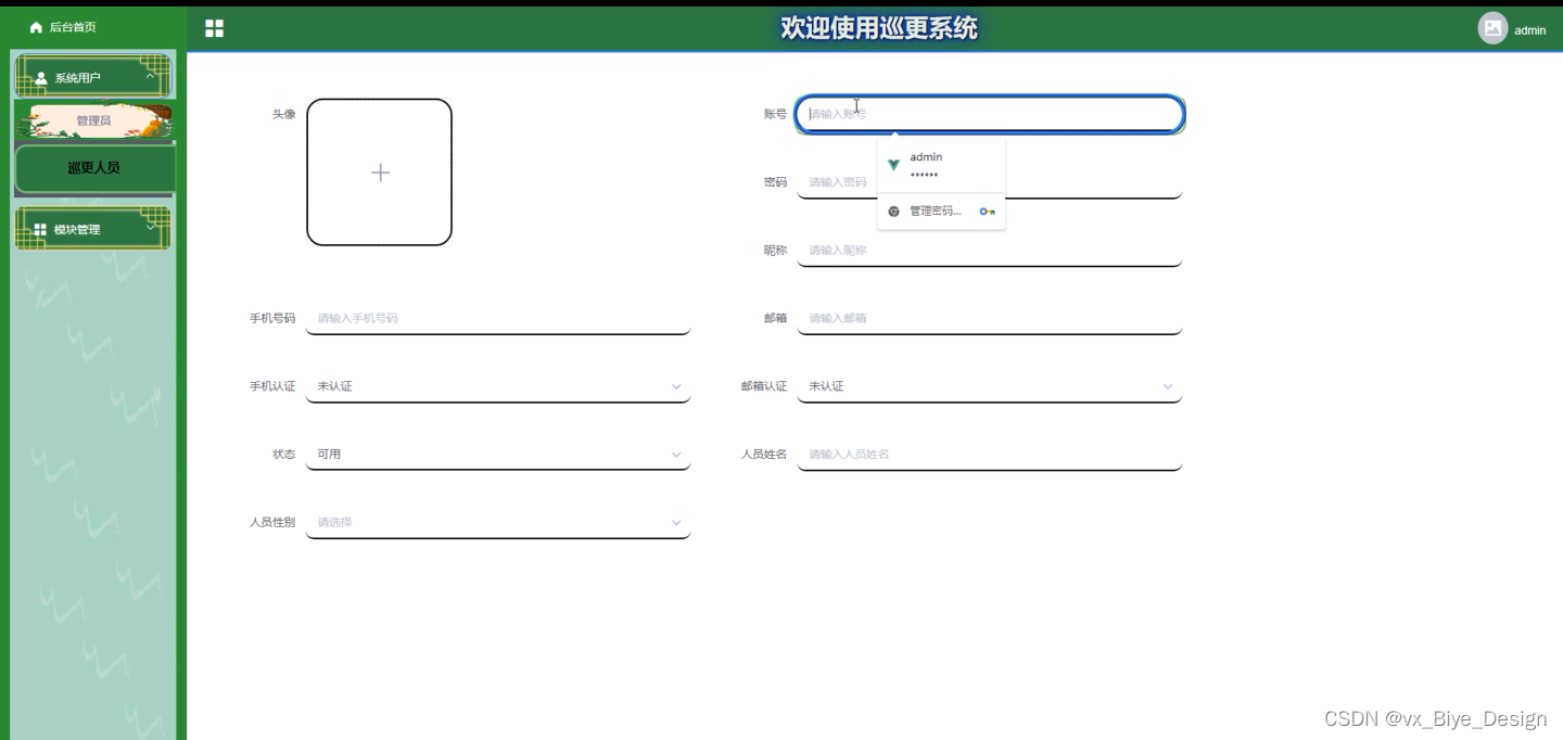 管理员登录巡更系统,在登录页面输入用户名、密码进行登录,如图5-1所示。
