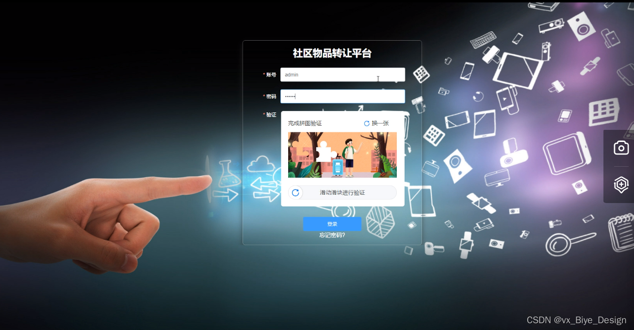 管理员登录,管理员通过输入买家名、密码、滑动滑块进行验证等信息,然后点击登录就能登录到系统进行系统的使用了,如图5-5所示。