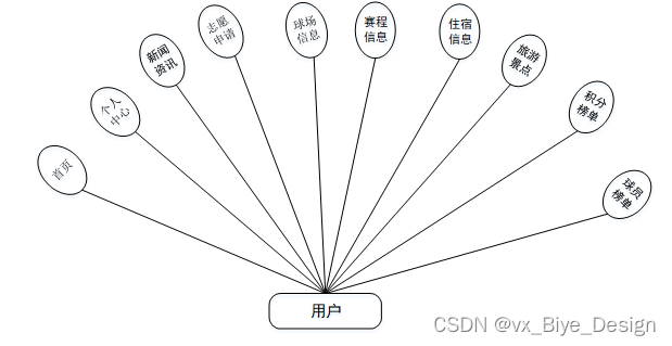 用户端实现功能包括首页、个人中心、新闻资讯、球场信息、赛程信息、住宿信息、旅游景点、积分榜单、球员榜单、志愿申请、我的等功能。用户端用例如图3-8所示。