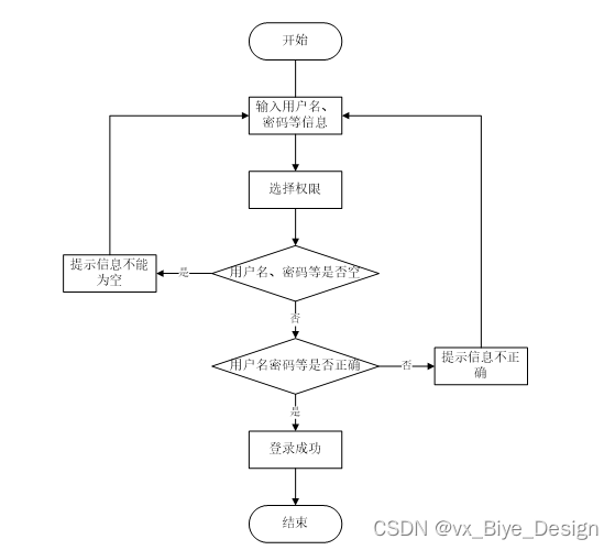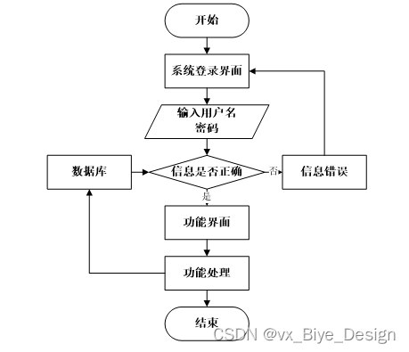用户打开并进入系统后,会先显示登录界面,输入正确的用户名和密码,系统自动检测信息,若信息无误,则用户会进入系统功能界面,进行操作,否则会提示错误无法登录,操作流程如图3-3所示。