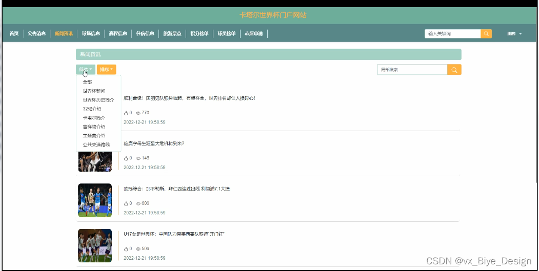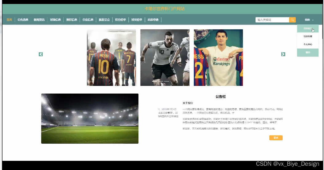In terms of system design, B/S structure is adopted. At the same time, Java technology is also used to design dynamic pages. MySQL database is used in the background. It is a very excellent Qatar World Cup portal system.
