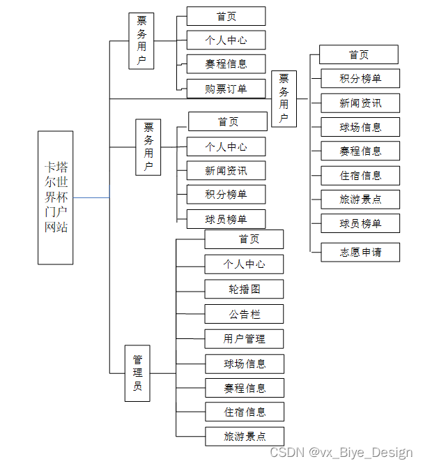 系统架构图属于系统设计阶段,系统架构图只是这个阶段一个产物,系统的总体架构决定了整个系统的模式,是系统的基础。卡塔尔世界杯门户网站的设计与实现的整体结构设计如图4-2所示。
