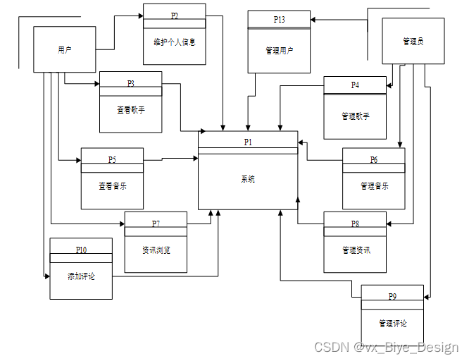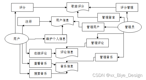 第三章研究了音乐推荐系统的需求分析,根据系统的特点,分析系统采用的体系结构及开发方法,以及该系统的运行环境,并分析了业务流程,绘制了业务流程以及数据流程。