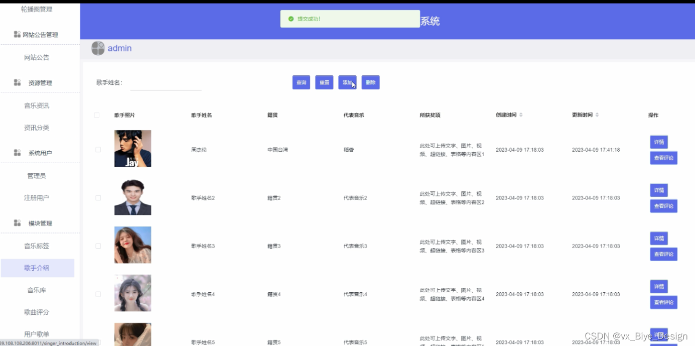| 添加歌手信息 | 管理员添加歌手信息 |