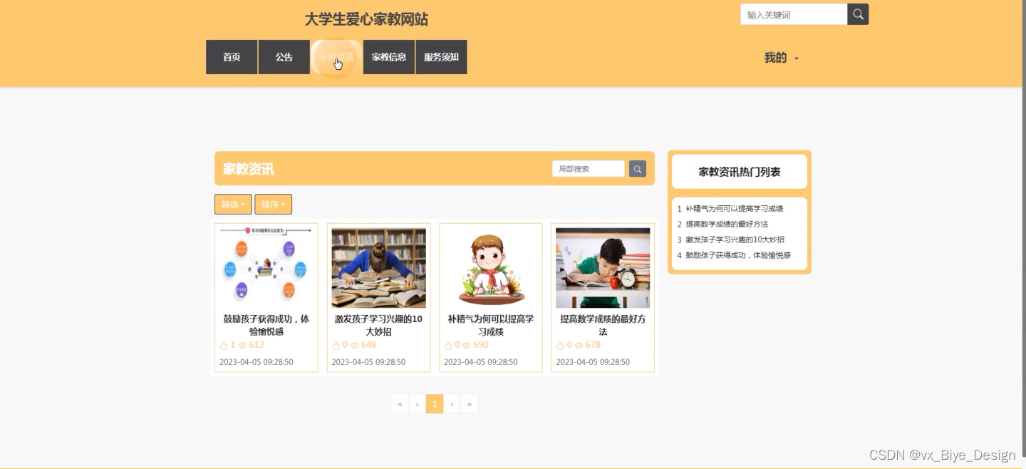 具体在系统设计上,采用了B/S的结构,同时,也使用java技术在动态页面上进行了设计,后台上采用Mysql数据库,是一个非常优秀的大学生爱心家教网站。
