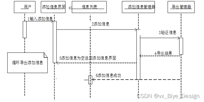 管理员、用户登录后均可进行添加信息操作,添加信息模块顺序图如图4-4所示。