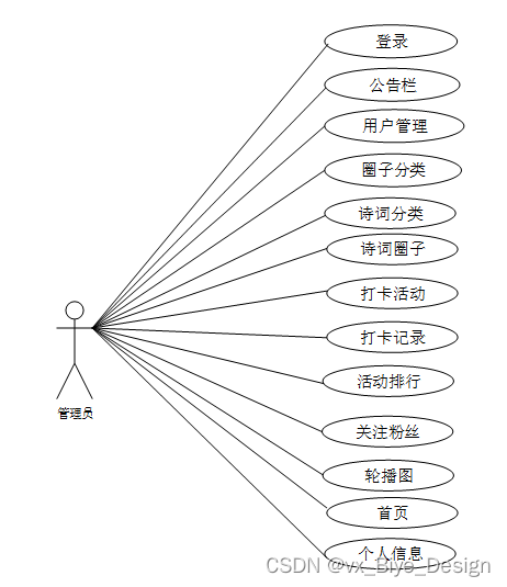 图2-2 诗词打卡微信小程序管理员角色用例图