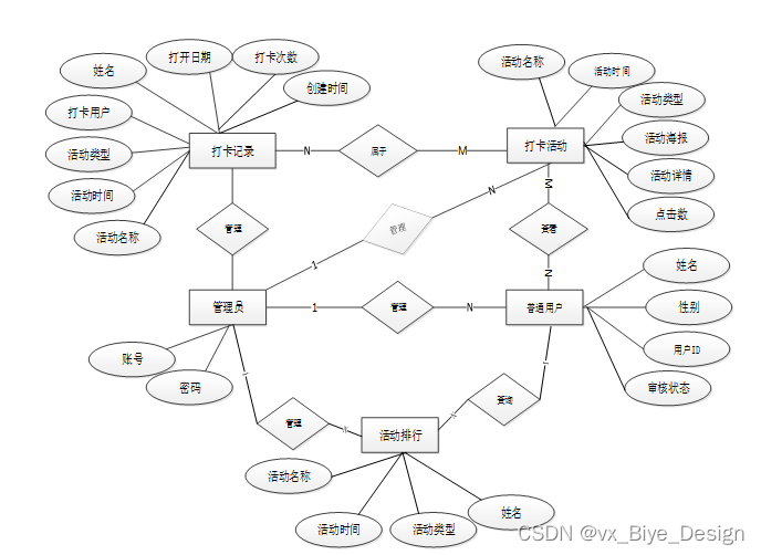 下面是整个诗词打卡微信小程序中主要的数据库表总E-R实体关系图。