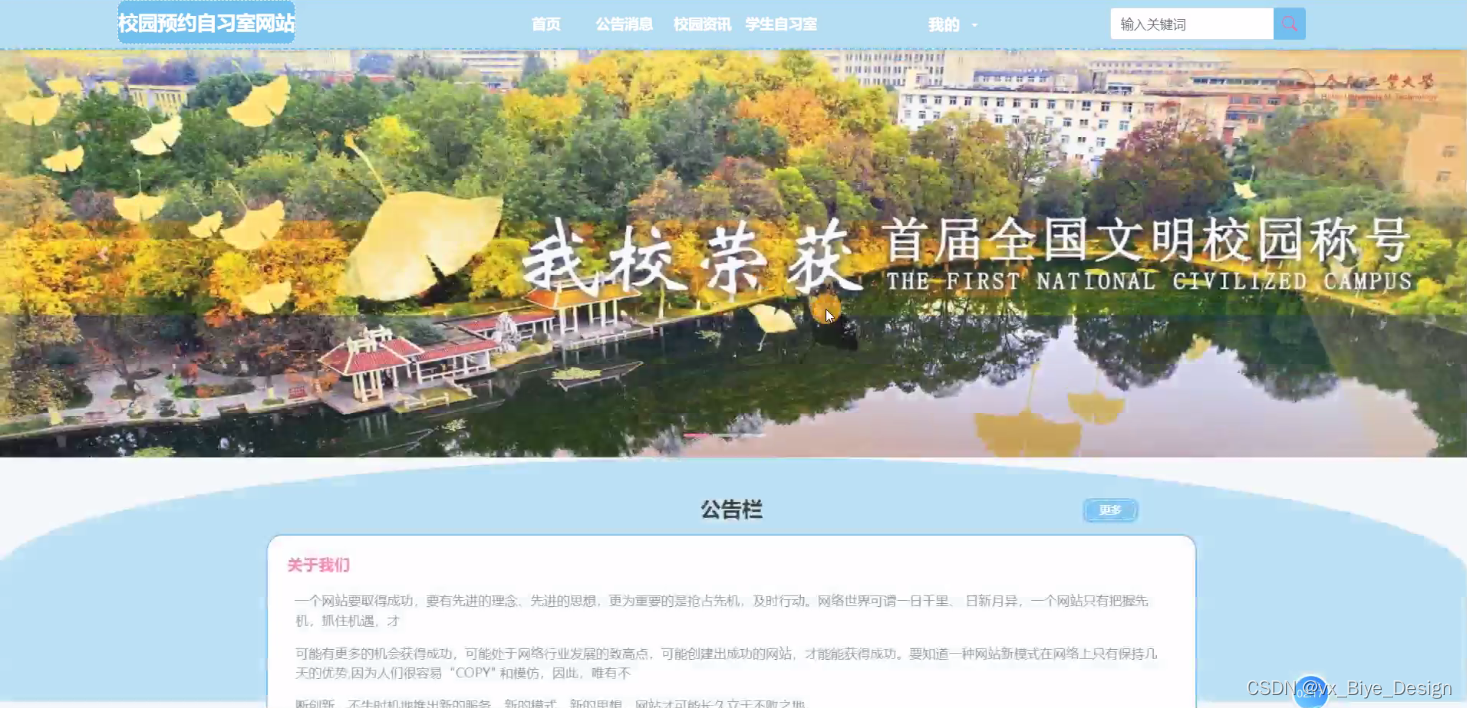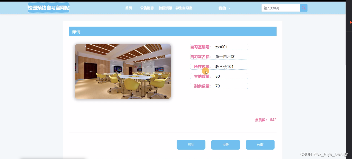 Under the influence of the rapid development of society, the vigorous development of education has greatly increased the number, diversity, quality and other requirements of schools, making the management and operation of education more difficult than in the past. Based on this reality, designing a fast and convenient campus reservation study room website is a very important and valuable thing. For traditional campus reservation and study room websites, campus reservation and study room websites have many incomparable advantages. First, they can quickly update campus information, second, manage a large amount of information, and finally, they are highly secure and easy to use. This makes the management and operation of campus reservation and study room websites very convenient. In the 21st century, due to the rapid development of technology and economy, people's general spiritual needs for non material aspects have become increasingly diverse. This system is proposed to achieve these goals.