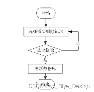 用户可选择要删除的信息进行信息删除操作,在删除信息时系统提示是否确定删除信息,是则删除信息成功,系统数据库将信息进行删除。删除信息流程图如图2-4所示。