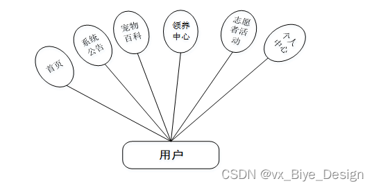 用户进入系统可以对首页、系统公告、宠物百科、领养中心、志愿者活动等信息操作。用户用例如图3-8所示。