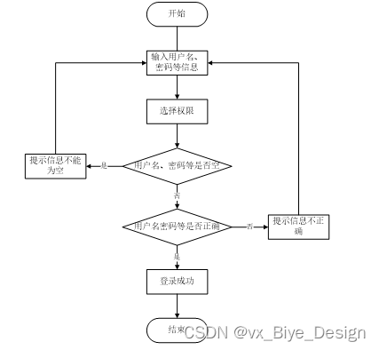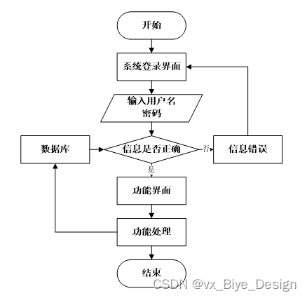 用户打开并进入系统后,会先显示登录界面,输入正确的用户名和密码,系统自动检测信息,若信息无误,则用户会进入系统功能界面,进行操作,否则会提示错误无法登录,操作流程如图3-3所示。