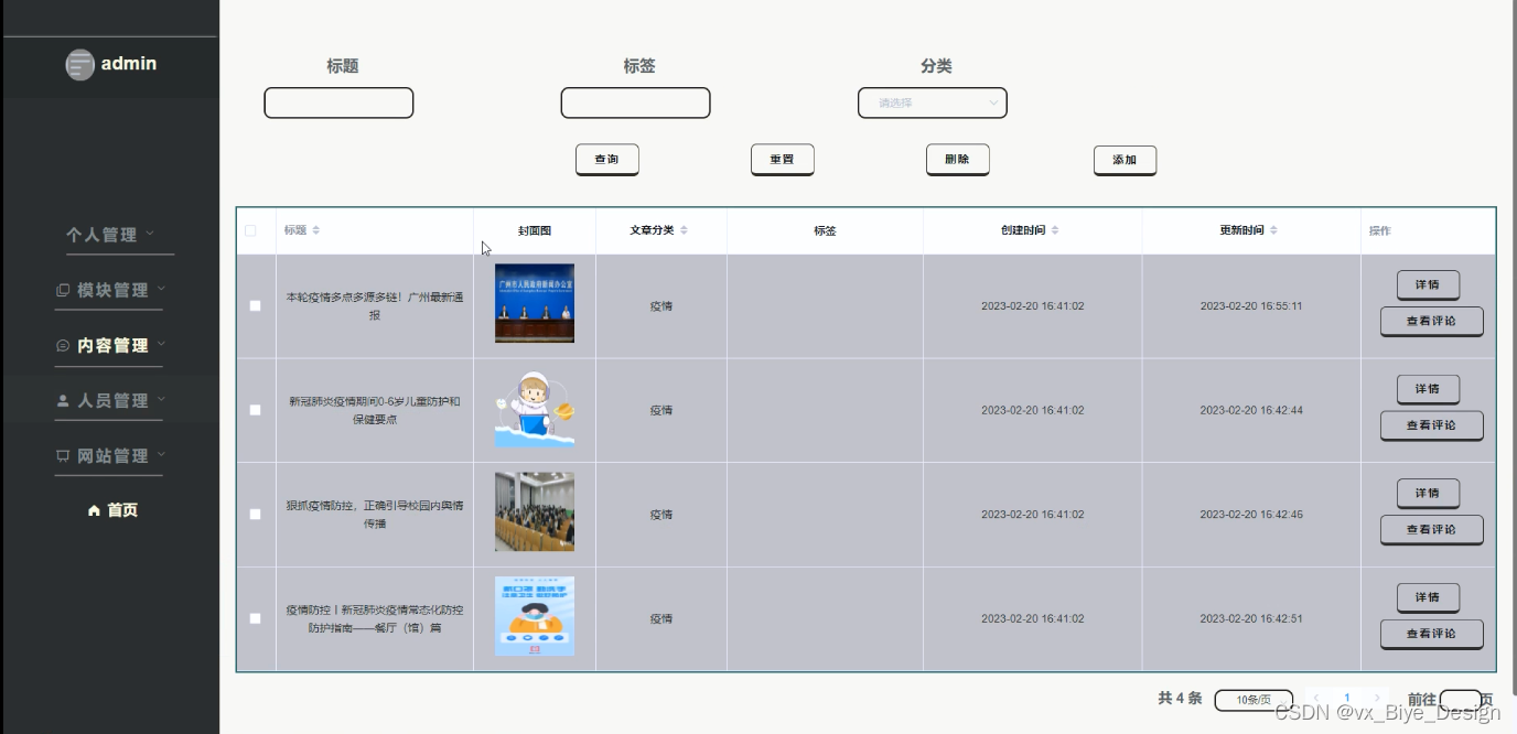 图4-12疫情资讯管理界面图