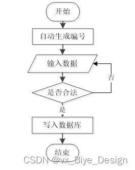 用户成功登入系统后就能够实现增加数据的操作,增加数据的编号是特定的,系统生成,用户不能随意填写,除了编号以外,其他增加信息用户自己填写,填写后的信息经过系统验证,验证合法通过就显示增加数据成功了,相反的话,就没有增加成功,图2-1显示的就是在增加数据时的流程。
